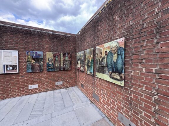 The Philadelphia President’s House, where George Washington and John Adams lived and worked from 1790 to 1800, also housed nine enslaved people that George and his wife, Martha, brought there from Mt. Vernon, VA. It was located right in front of the modern Liberty Bell Center and across from Independence Visitors Center, at 6th and Market Streets. The House has become a site of continual controversy regarding how or whether to tell the story of American slavery and the story of the nine enslaved people who lived and worked here. Most recently, in January 2026 the National Independence Historical Park, which manages the site, forcibly removed the interpretive panels that tell this history. Read below for more history on the timeline of the controversy.