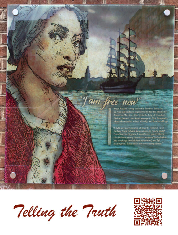 This page is designed to support continuing agitation, advocacy and to spread the word about the interpretive panels recently removed from the President’s House as widely as possible. You will find images of the missing panels, some of which can be printed out for your use as flyers, sandwich boards, art to paste on the blank walls, classroom supplements, etc. Each printable piece carries a QR code that will direct readers to the full array of interpretation from the lost panels, along with other relevant history about the presidents, the enslaved people, the struggle to interpret the site, and the current battle over its future.