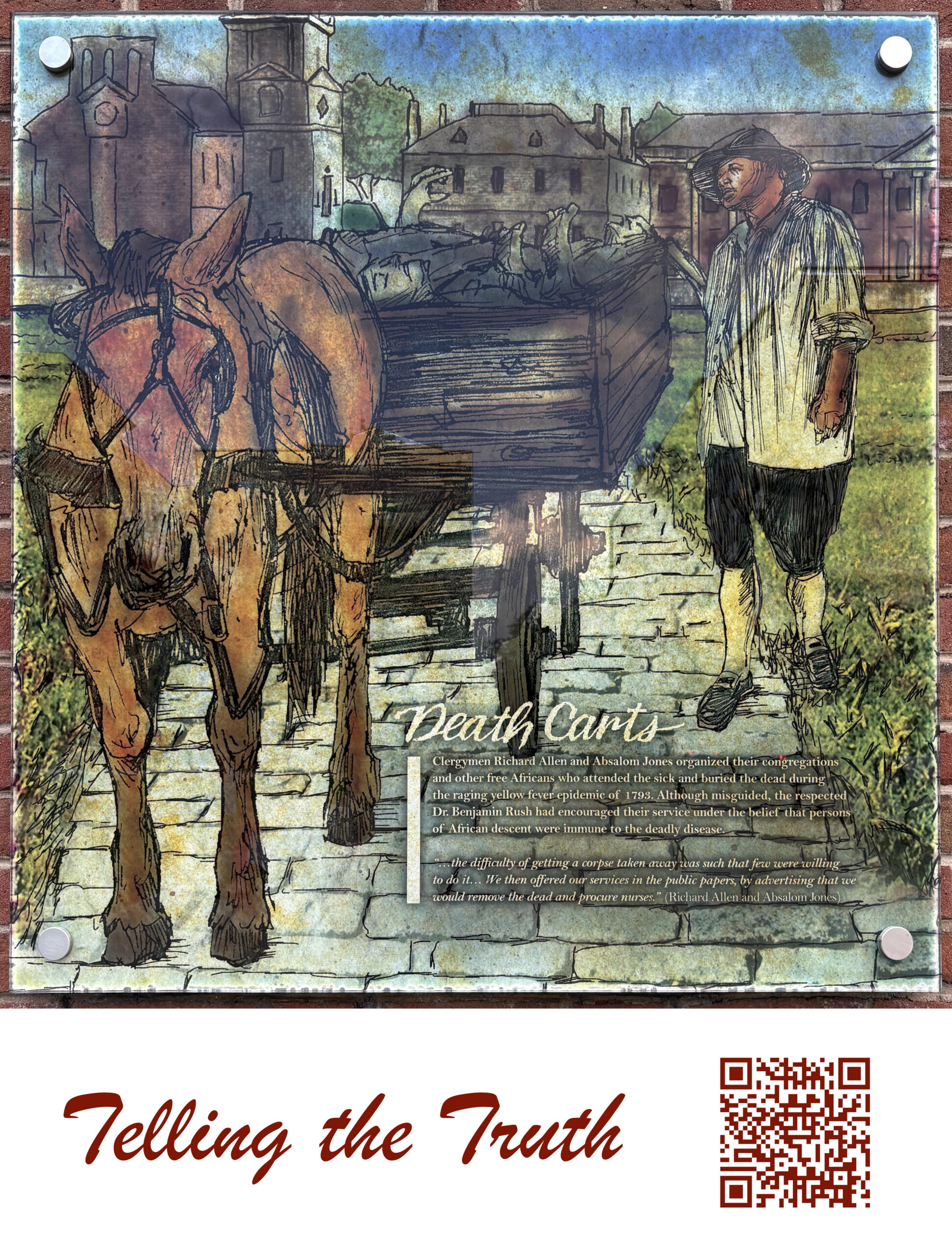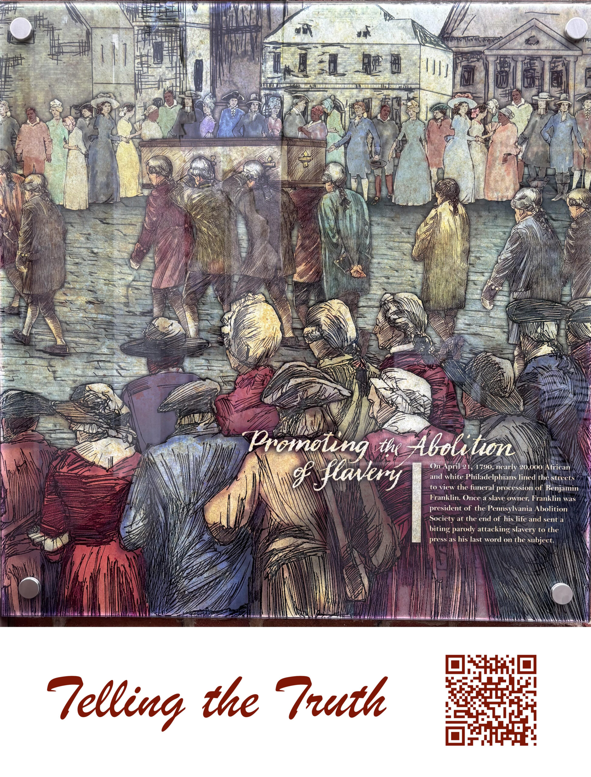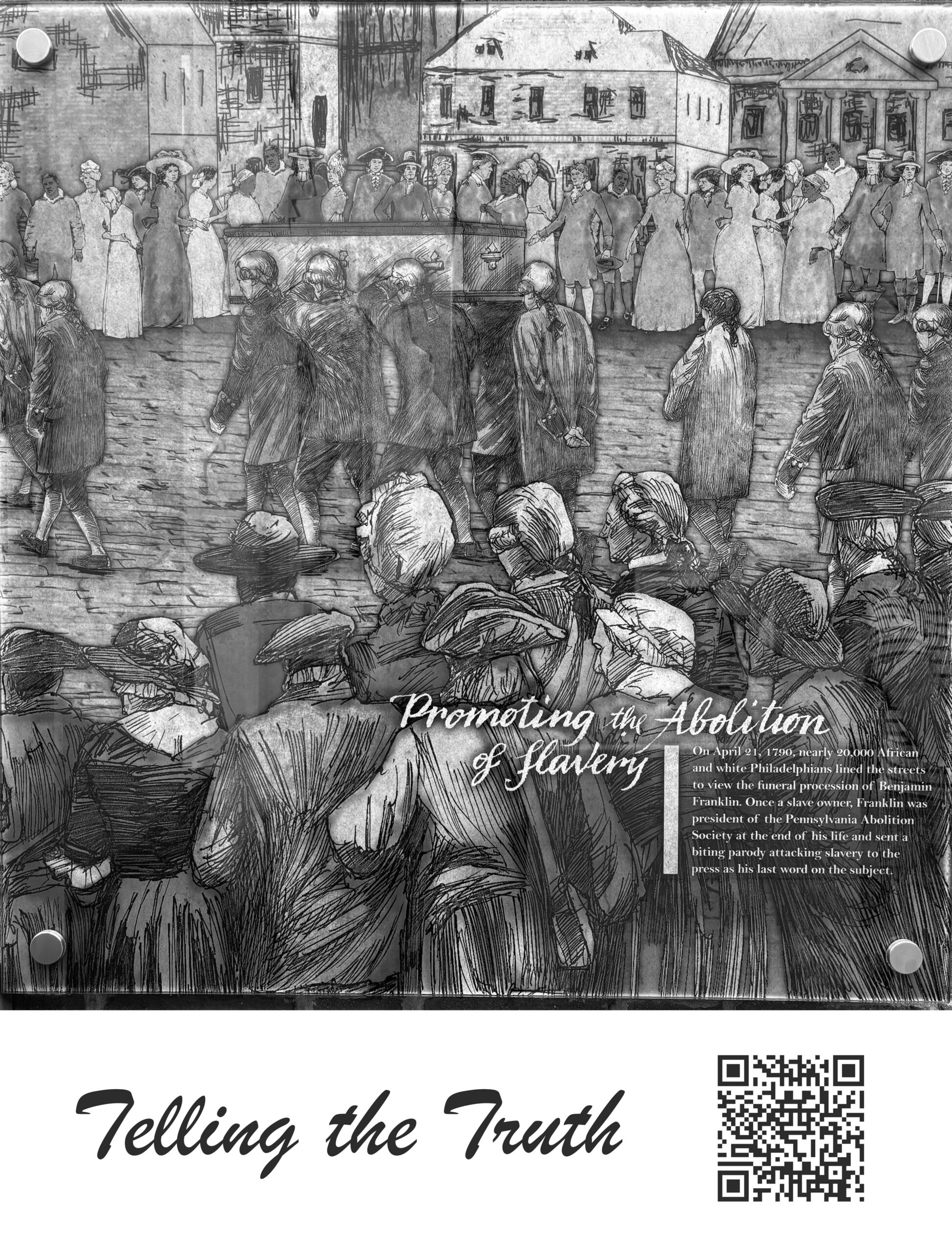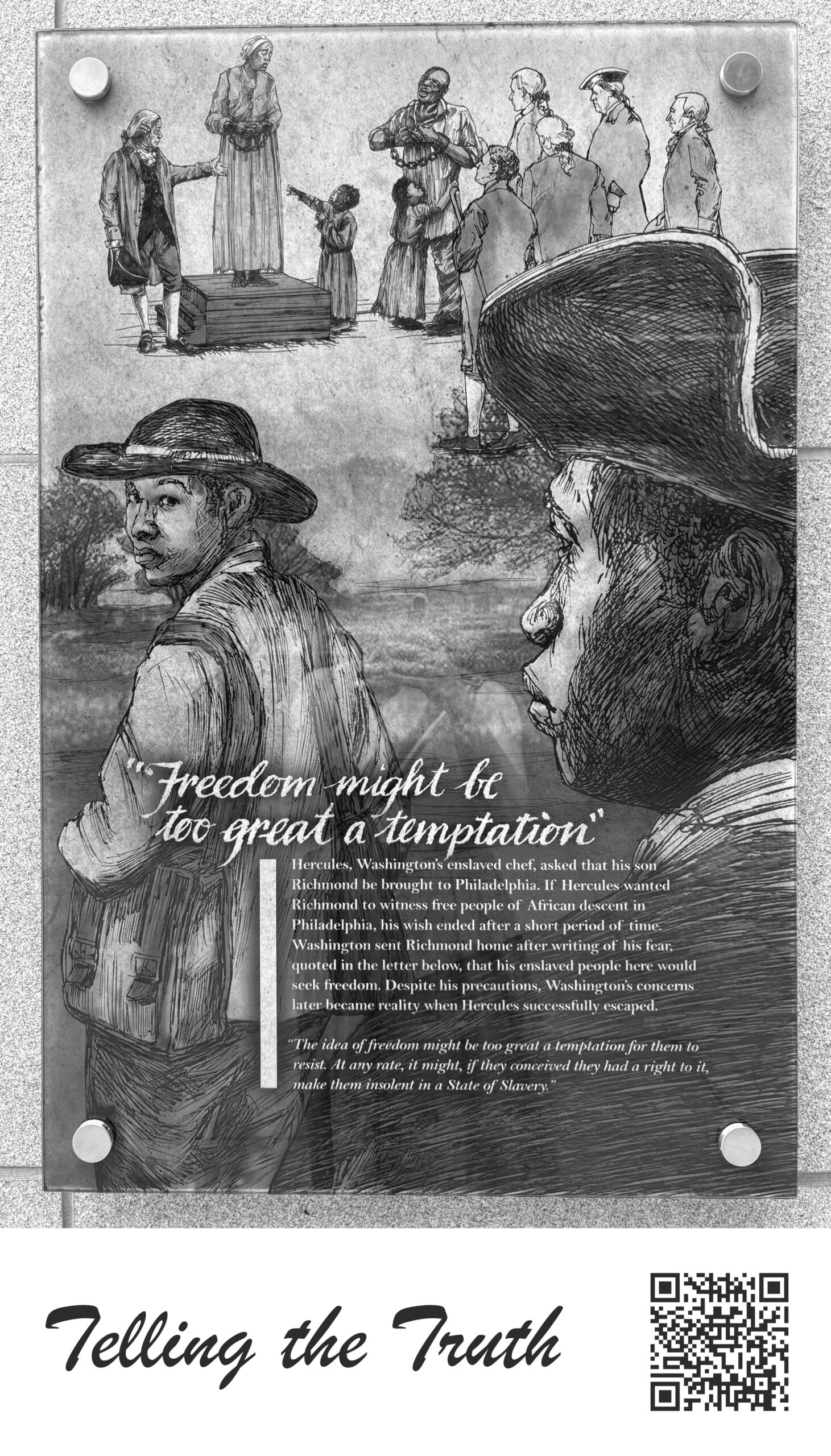 This page is designed to support continuing agitation, advocacy and to spread the word about the interpretive panels recently removed from the President’s House as widely as possible. You will find images of the missing panels, some of which can be printed out for your use as flyers, sandwich boards, art to paste on the blank walls, classroom supplements, etc. Each printable piece carries a QR code that will direct readers to the full array of interpretation from the lost panels, along with other relevant history about the presidents, the enslaved people, the struggle to interpret the site, and the current battle over its future.