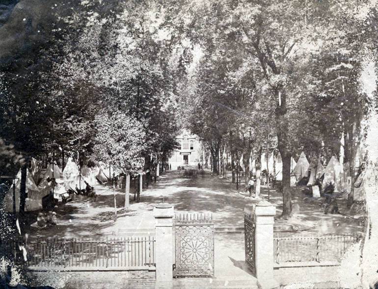 Recruiting fairs such as this one in Independence Square, photographed in 1862, helped to minimize the impact of the draft in Philadelphia. (Library Company of Philadelphia)