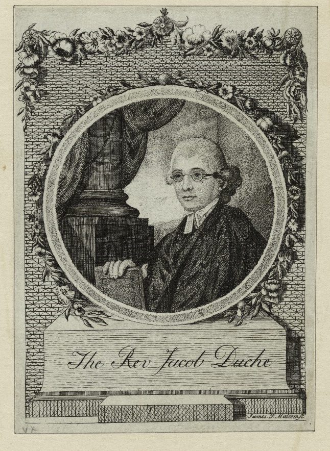 Although lay Anglicans were involved in the political and economic debates of the 1760s and early 1770s, clergymen stayed largely apart from events until September 7, 1774, when Samuel Adams of Massachusetts solicited Christ Church’s Reverend Jacob Duché (1737/8-1798) to open the First Continental Congress in prayer and serve as its chaplain. Adams’s choice of Duché was a deliberate attempt to court the favor of Anglican delegates from influential southern colonies. When war broke out the following April, Philadelphia’s Anglican clergymen remained supportive of the patriot cause. In a June 1775 letter to the bishop of London, they justified their efforts to effect a peaceful and mutually advantageous outcome and remain in good standing with their congregations.