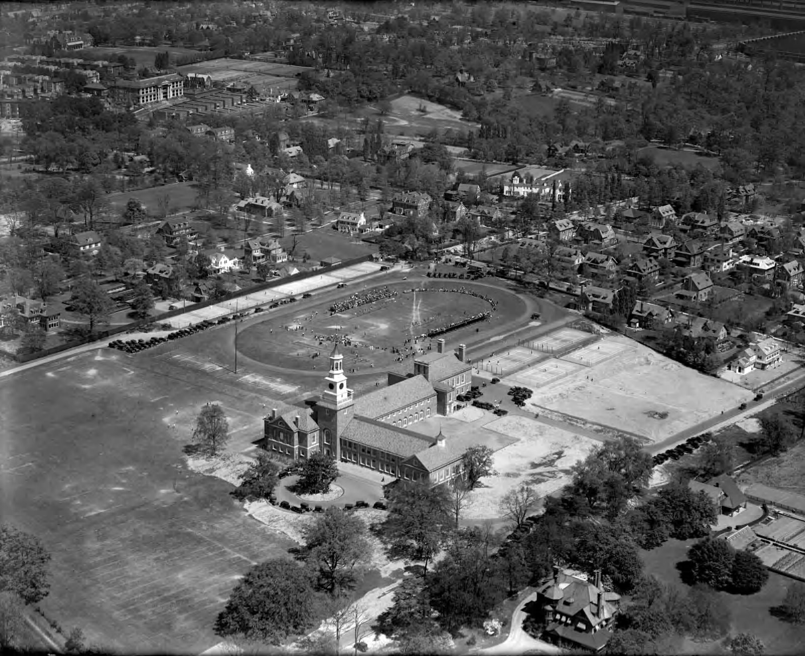 Academy was loosely tied to the Episcopal Church and even explored merging with Episcopal Academy. Boarders were expected to attend Sunday services at neighboring St. Martin-in-the-Fields Episcopal Church until 1934 when the Depression forced the boarding department to close. Thinking that this fashionable neighborhood needed a girls’ “finishing school,” two southern women, Ann Bell Comegys and Jane Erwin Bell, founded Springside School in 1879. After occupying several sites in Chestnut Hill for nearly eighty years, it moved in 1957 to the front lawn of Druim Moir, the former home of multifaceted entrepreneur and real estate developer Henry Howard Houston. By then, its student body had become more diverse thanks to the gradual modification of its neighborhood orientation. Almost half its students now lived outside Chestnut Hill, but these girls often had trouble fitting in. Because the two schools were adjacent, they increasingly entered into joint ventures, beginning in the 1960s, and finally merged completely in 2011, becoming Springside Chestnut Hill Academy.