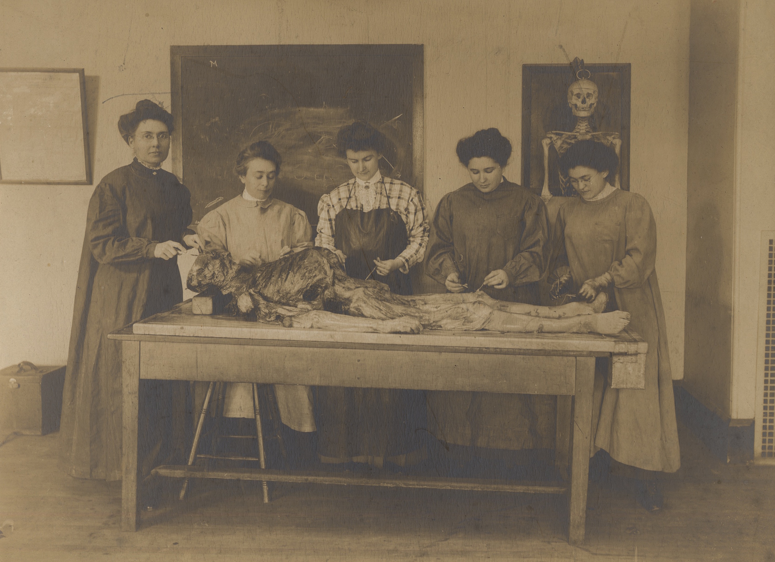 WMCP faculty and alumnae expanded students’ opportunities for academic and real-world medical experience in the late nineteenth century. In 1862, the college moved from its original location at 627 Arch Street into a well-equipped new building on North College Avenue next to the Woman’s Hospital, near Girard College and not far from another Quaker-supported initiative, Eastern State Penitentiary. In 1887, the college began an outpatient maternity service in South Philadelphia, and in 1895 established a nearby dispensary at 333-335 Washington Avenue. Students cared for women and children in homes throughout the neighborhood—dubbed the “South Pole” by the students for its geographical and social remoteness from their world on North College Avenue—gaining invaluable experience and providing healthcare to a marginalized community of immigrants and African Americans. In 1930, WMCP moved to the growing neighborhood of East Falls.