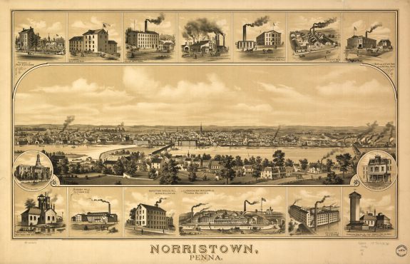 The dense rail network that emerged in the latter half of the nineteenth century allowed individual towns to specialize in manufacturing and fostered a resilient economy whose diversity of products and services kept the area strong across the economic upturns and reversals of the decades. The variety of products included automobile works in Ardmore, worsted and felt textiles in Bridgeport, shovels and spades in Cheltenham, flags and banners in Collegeville, men’s clothing in Lansdale, and cigars in Schwenksville.